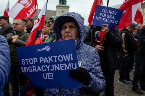 Polský premiér Donald Tusk několikrát ujistil Poláky, že Polsko s migračním paktem nesouhlasí a že se nemusí obávat, že by polská vláda změnila názor. Zároveň ale staví na 49 místech v Polsku za evropské prostředky centra integrace cizinců a Poláci moc nevěří, že mají být využita hlavně pro Ukrajince a Bělorusy.