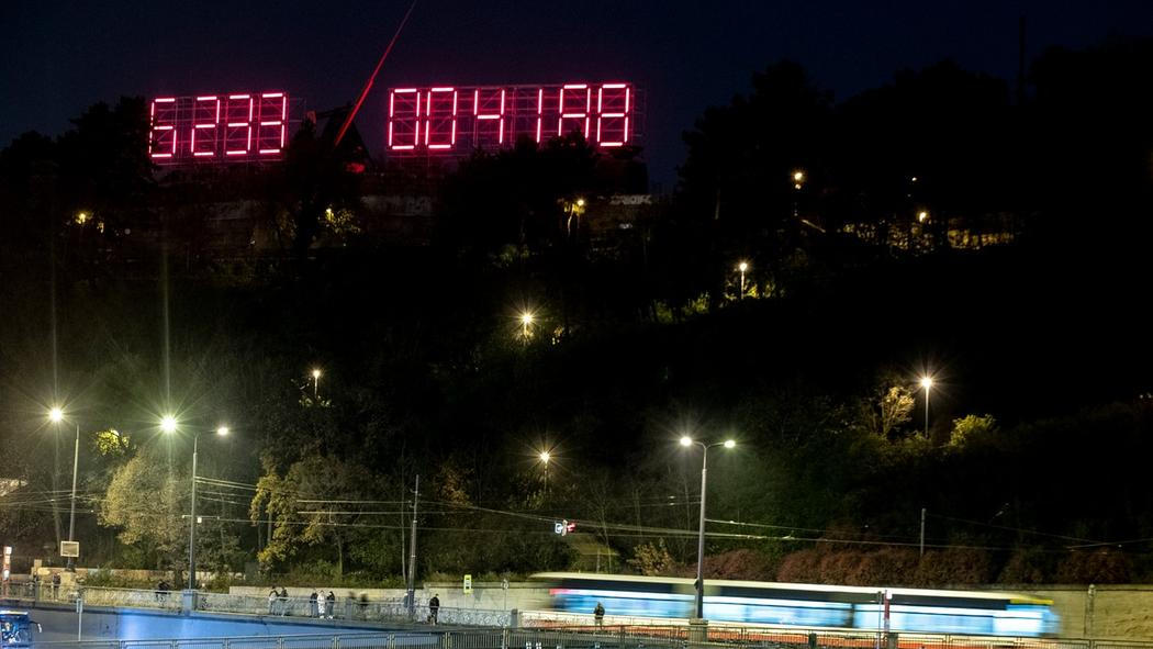 Uskupení Festival Svobody nechalo na místě bývalého Stalinova pomníku umístit obří digitální hodiny, jež odpočítají dobu sedmi let, kdy má údajně