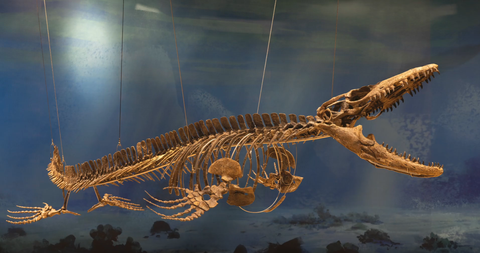 V muzeu máte i kostru zakletou v kameni. Co to je?