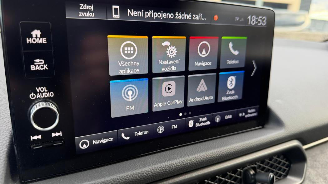 Pochvalu si zaslouží i infotainment. Honda nepodlehla módní vlně přehnané digitalizace, takže klimatizace má vlastní panel s fyzickými tlačítky. Dotykovou obrazovku navíc doplňují dvě mechanická tlačítka pro návrat do menu a klasický otočný ovladač hlasitosti. Jedinou vyloženě nepříjemnou věcí je vypínání otravného zvukového alarmu překročení rychlosti – vyžaduje zanoření hluboko do menu, a to ještě pouze ve chvíli, kdy vůz stojí.