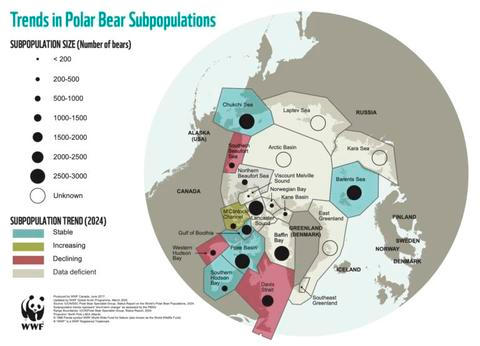 - Populace s nedostatkem dat: U značné části subpopulací, zejména v rozlehlých oblastech ruské Arktidy, chybí dostatek dat pro určení jasného trendu. Tento fakt je klíčový pro tlumení plošně alarmujících tvrzení.