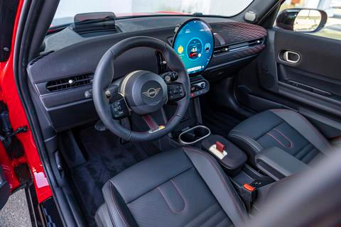 Už od znovuzrození Mini na začátku tisíciletí si návrháři interiérů hráli s retroodkazy na zakladatele rodu, což se projevuje zejména v různých variacích na kruhový motiv palubního přístroje uprostřed palubní desky. Estetiku se vždy snažili skloubit s funkcí, což se ovšem ne vždy úplně povedlo. Jak je na tom současný JCW?