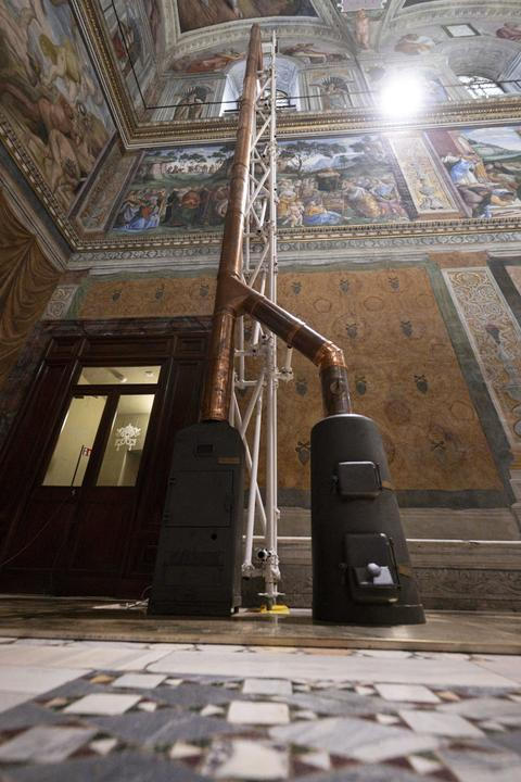 Uvnitř Sixtinské kaple jsou hned dvoje kamna. Jednak válcová litinová z roku 1939, kde se pálí nejen hlasovací lístky, ale i další písemnosti vzniklé v průběhu konkláve. Jsou na nich vyražená data předchozích voleb. Druhá kamna, instalovaná v roce 2005, jsou kvádrová a vybavená elektronikou. Do nich se vhazují speciální kapsle s přísadami pro jednoznačné zabarvení kouře, aby to nemátlo davy, jako se to v minulosti již několikrát stalo.