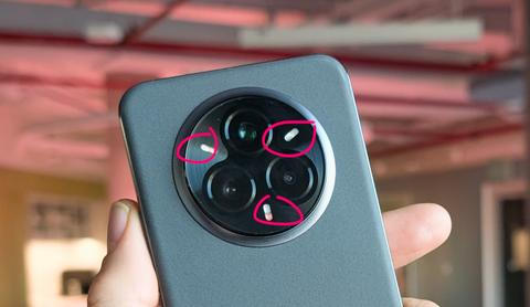 U focení je ještě jedna originalita: Systém tří LED diod, které využívají blesk pro přisvícení. Jsou rozestavěny v trojúhelníku kolem čoček. Jde o to, že když je světlo z boku, vrhá stín. Tohle funguje víc jako ringflash nebo populární kruhová světla, tak jak si je kupují na makeupová videa ženy. Prostě to lépe fyzikálně přirozeně vyhladí pleť při selfie.