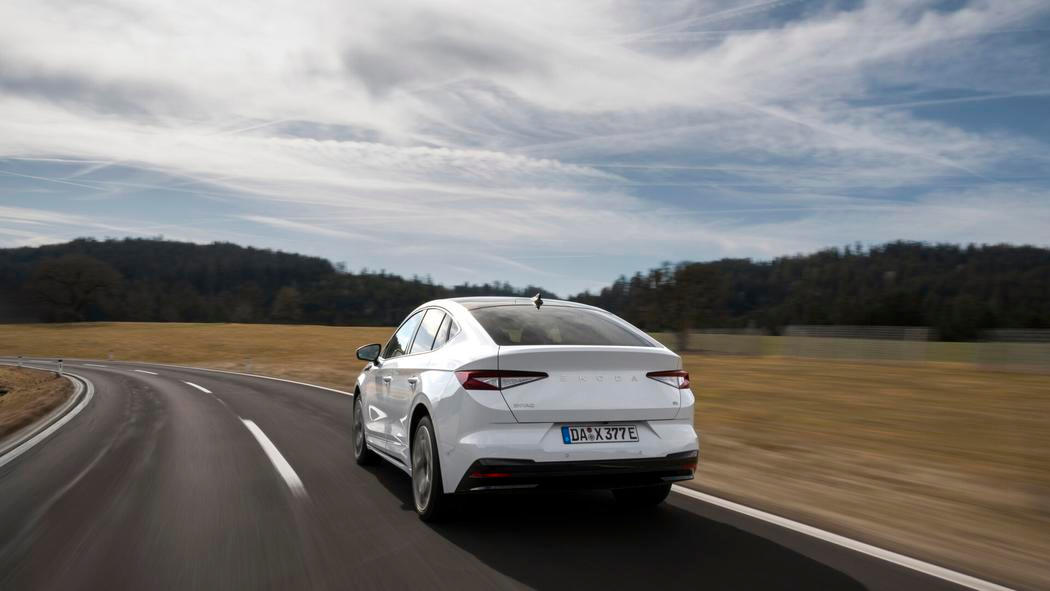 Subjektivně se Enyaq z jízdního hlediska vůbec nezměnil. Sešlápnutí plynu znamená pružný start a bleskový rozjezd. Auto je jízdně velmi příjemné, určitě ale ne nezaměnitelné. Podvozek je optimálně naladěný a kabina velmi dobře odhlučněná. Dobrá aerodynamika je poznat hlavně ve vyšších rychlostech, šum obtékajícího vzduchu je slyšet minimálně. V zatáčkách se samozřejmě dvě tuny mrtvé hmoty nezapřou, i když se to Enyaq snaží všemi prostředky maskovat.