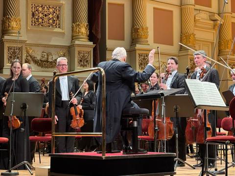 Ta pravá ruka byla středobodem koncertu, k ní se logicky upínal zrak všech hráčů, ale snad také oči všech ve vyprodané budově Semperoper (1300 sedadel), protože právě ona ruka ponižovala další dirigentský úzus a to, že dirigent řídí orchestr ve stoje. Od Herberta Blomstedta, téměř stoletého svědka hudby, nelze očekávat vzpřímený postoj a rázné pohyby. To ovšem absolutně nevadilo, protože jeho nezpochybnitelná autorita smíšená s jeho oblibou u hráčů a úctou, kterou mu při příchodu na jeviště projevilo mohutným potleskem zaplněné hlediště i lože a balkony a galerie, dokázala ovládnout hru všech osmdesáti tří hráčů na pódiu.