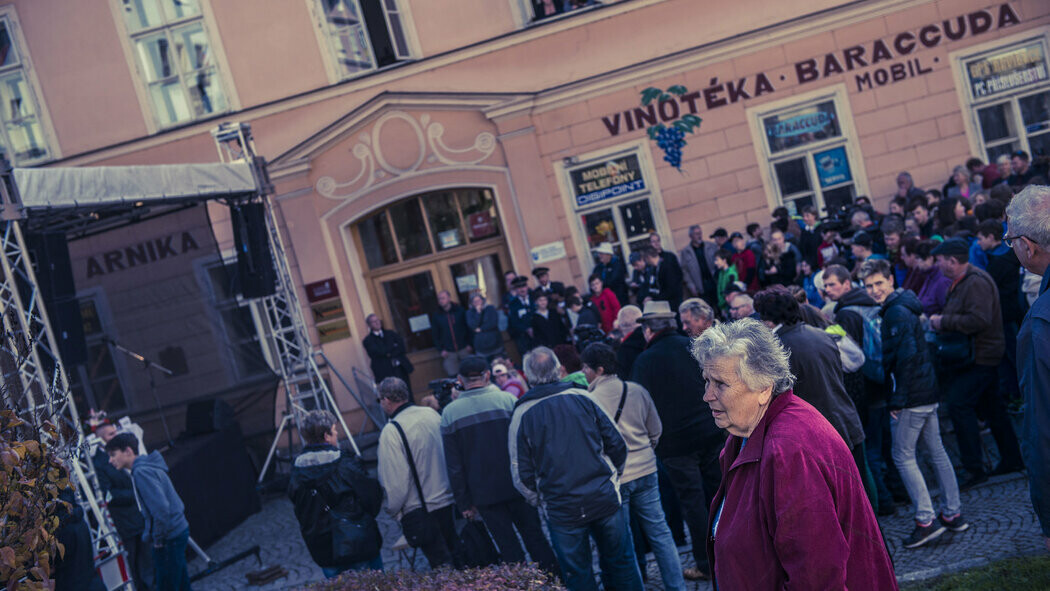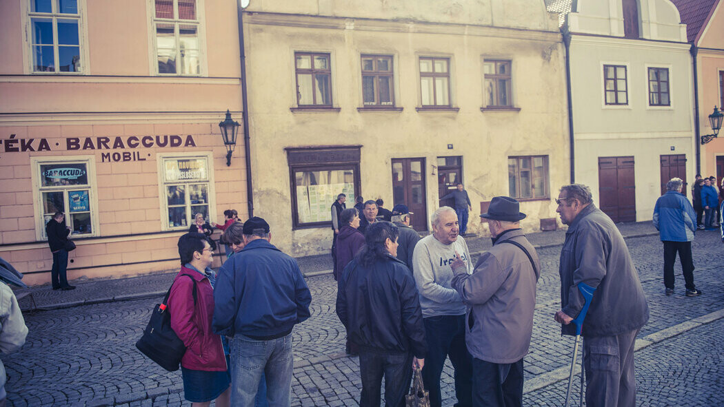 Na náměstí pětitisícové obce se ve všední den po obědě sešli především důchodci a pak žáci místní školy. Prezidenta nadšeně vítají. Když zazní vtip nebo bonmot, v davu to pobaveně zašumí. Prezident hned v úvodním slovu zmíní několik fakt, která si o Horšovském Týnu zjistil: kolik je místnímu starostovi let nebo že nezaměstnanost tu dosahuje pouhých dvou procent. „Plzeňský kraj je jako bonboniéra, nikdy nevíte, co si vytáhnete,“ říká z pódia hejtman Josef Bernard (ČSSD), který hlavu státu po regionu doprovází. Tato obec by zjevně měla patřit k těm sladším bonbónům.