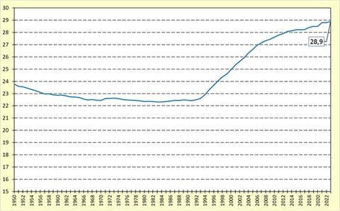 Ano, tento trend je dlouhodobý, průměrný věk v době prvního porodu se začal zvyšovat ale až po roce 1993. Do té doby osciloval mezi 22 a 23 lety. Od roku 1993, kdy byl 22,6 let, začal téměř lineárně stoupat a v roce 2023 dosáhl 28,9 let. Nejsme v tom nijak výjimeční, v mnoha zemích Evropy, především těch západních, je vyšší než 30 let.