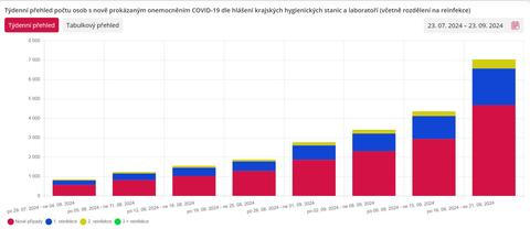 Jen za pondělí 23. září přibyly téměř dva tisíce nakažených covidem (z toho necelá tisícovka reinfekcí). Letos v září, které ještě nekončí, mělo dvě čárky na testu více než 10 tisíc lidí, každý třetí testovaný. Do statistik se navíc dostanou jen nahlášené infekce, reálně jich bude násobně více. Vzhledem k počasí bude přibývat všech sezónních respiračních onemocnění.