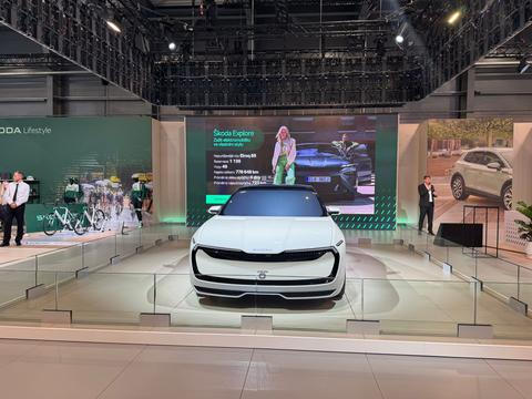 Výsostné místo v hlavní hale patří mladoboleslavské škodovce, která jako hvězdu budoucnosti vystavuje designovou studii Vision O – futuristický koncept rodinného SUV na platformě MEB, který naznačuje směr značky po roce 2030. S délkou přes 4,9 m a baterií o kapacitě 100 kWh slibuje dojezd 700 km, autonomní jízdu úrovně 4 a interiér z recyklovaných materiálů.