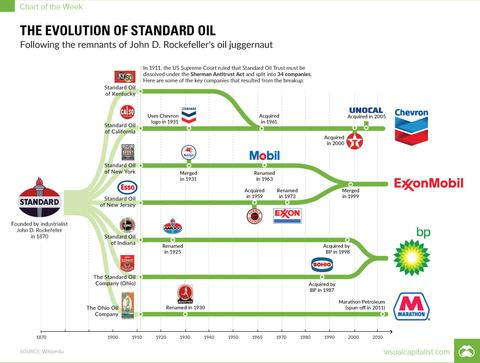 Firma, za kterou stála rodina Rockefellerů, na konci 19. století kompletně ovládla americký trh s ropnými produkty – po roce 1900 to bylo přes 90 procent americké produkce a 85 procent finálního prodeje.