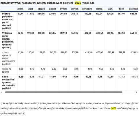 Ponechme na jinou diskusi otázky valorizací a dalšího zvyšování aktuálních penzí, které se jeví jako rozpočtově riskantní – když tuzemské vlády od roku 2020 vrší jeden stamiliardový rozpočtový deficit za druhým. Jako prostý fakt konstatujme, že deficit „důchodového účtu“, tedy státního účtu hospodaření systému důchodového pojištění se nyní pohybuje kolem 16 miliard korun, přitom před rokem se dokonce blížil téměř nulovému zadlužení (-5,3 mld. Kč v lednu 2025).