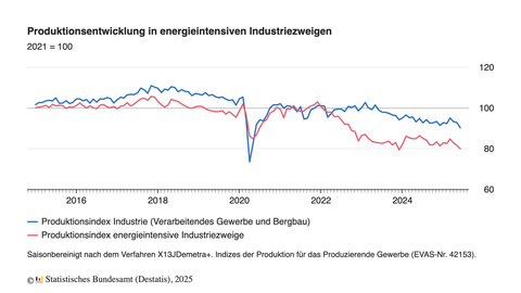 Významný pokles rovněž zaznamenávají energeticky náročná průmyslová odvětví, jako je sklářství, hutnictví či chemický průmysl. Zatímco celková průmyslová výroba je nyní na 90 procentech úrovně z roku 2021, u energeticky náročných sektorů poklesl výkon na 80 procent.