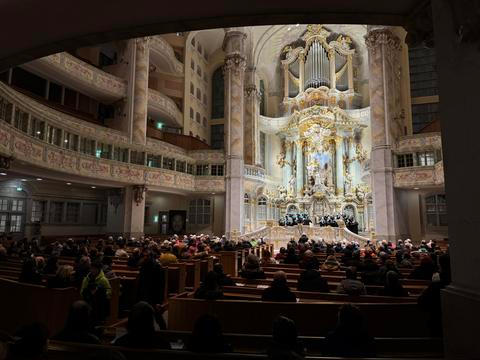 Tento čtvrtek ve 22.03 nebyly ve Frauenkirche slyšet padající bomby, ale hlasy žen z místního chrámového sboru. Když skončily, rozezněly se varhany. A když dozněly i ty, přednesl něžné kázání John Witcombe, děkan katedrály v anglické Coventry, která byla vybombardována 14. listopadu německou Luftwaffe.