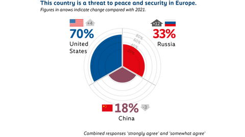Agentura Ipsos ve svém průzkumu pro Security Radar 2025 uvádí: „Většina respondentů podporuje spolupráci s různými světovými hráči: 67 % spolupráci s Čínou, 64 % s Ruskem – což je nejvyšší hodnota v průzkumu (14 zemí) a 60 % s Evropskou unií. Naproti tomu spolupráci se Spojenými státy podporuje jen 42 % respondentů, přičemž mezi mladými ve věku 18–29 let podpora klesá dokonce na 30 %.“