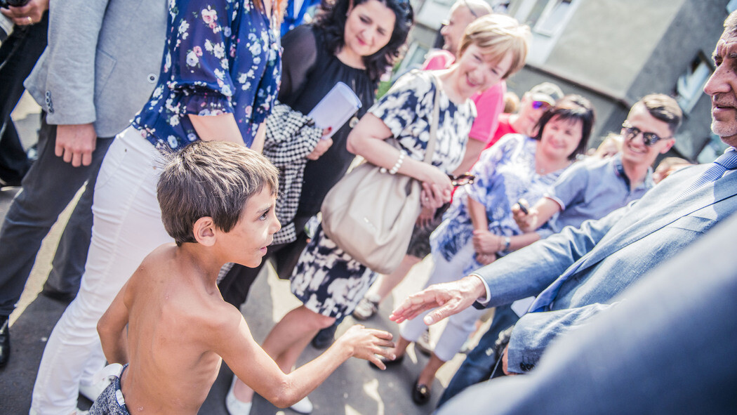 Je pondělí, pár hodin po poledni. Sklářskou ulici v Předlicích z obou stran stráží policie. Nad prašnou ulicí na okraji Ústí nad Labem se vznáší vtíravý puch. Skládka ve dvoře jednoho z obytných domů je zdrojem i místních epidemií žloutenky a opakujících se požárů. Ze stromů se snáší bílé chmýří, po cestě se občas prožene větrem rozpohybovaný igelit. Na ostrém slunci postává několik místních. Kolem se tvoří hloučky dětí. „Vyfoťtě mě,“ pokřikují na fotografy, další se naopak snaží schovat. Mezi přešlapující novináře přijíždí vládní kolona s bílým autobusem. Vystupuje z něj premiér v demisi Andrej Babiš v doprovodu několika ministrů.