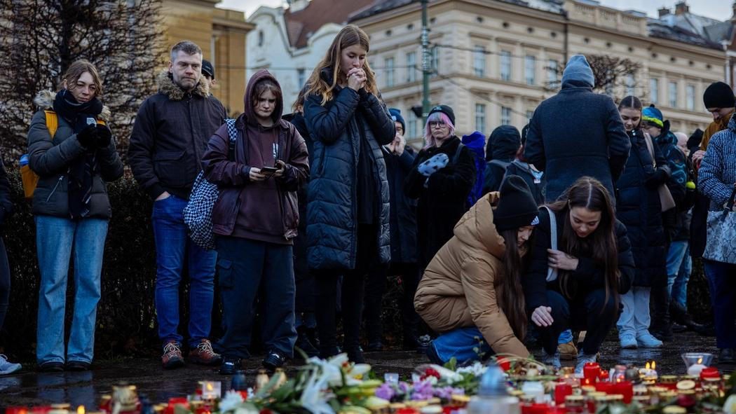 BBC se věnuje pietnímu shromáždění před Karolinem o pátečním ránu. „Tma nad Prahou ustoupila, ale v budově Filozofické fakulty se stále svítilo, jako celou noc. Policejní kordon je pryč, nicméně budova Univerzity Karlovy stále zůstává místem zločinu. Teprve dnes ráno bylo odvezeno tělo čtrnácté oběti nejhorší masové vraždy v českých dějinách. O kus dál, u vchodu do další univerzitní budovy, vyrostlo pietní místo na památku čtrnácti zavražděných zaměstnanců a studentů. Lidé na dlažbu pokládali malé svíčky v červených kalíšcích a květiny. Ve sněhové vánici se kolem choulí převážně mladí lidé, mezi nimiž je mnoho studentů univerzit a škol.“
