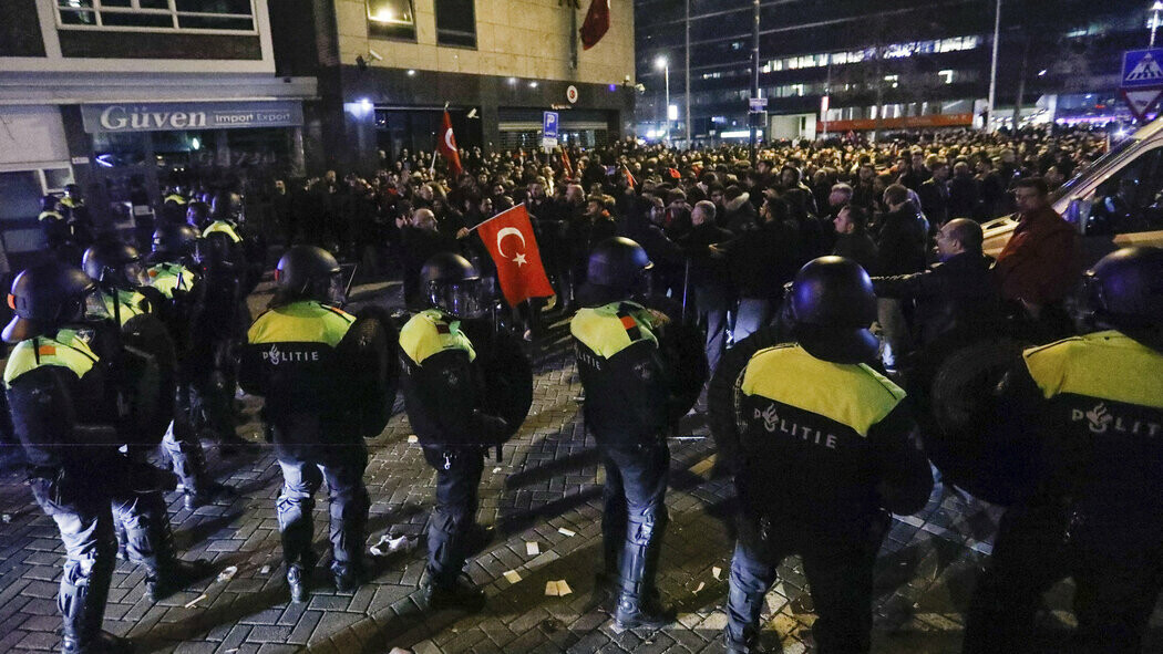 V Nizozemskom Rotterdamu se večer a v noci střetli místní Turci s policií. Důvodem byly kroky úřadů, které odepřely návštěvu země tureckémi ministrovi zahraničí a následně další člence vlády, která místo něj jela mezi krajany agitovat před nadcházejícím referendem o posílení pravomocí prezidenta Erdogana. Obě země jsou kvůli tomu v ostrém diplomatickém sporu.