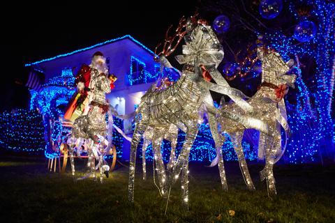 K vidění zdaleka nejsou jen světelné řetězy – divokým kompozicím vévodí pestrobarevní Santové, sobi, sněhuláci, louskáčci nebo sněhové vločky.