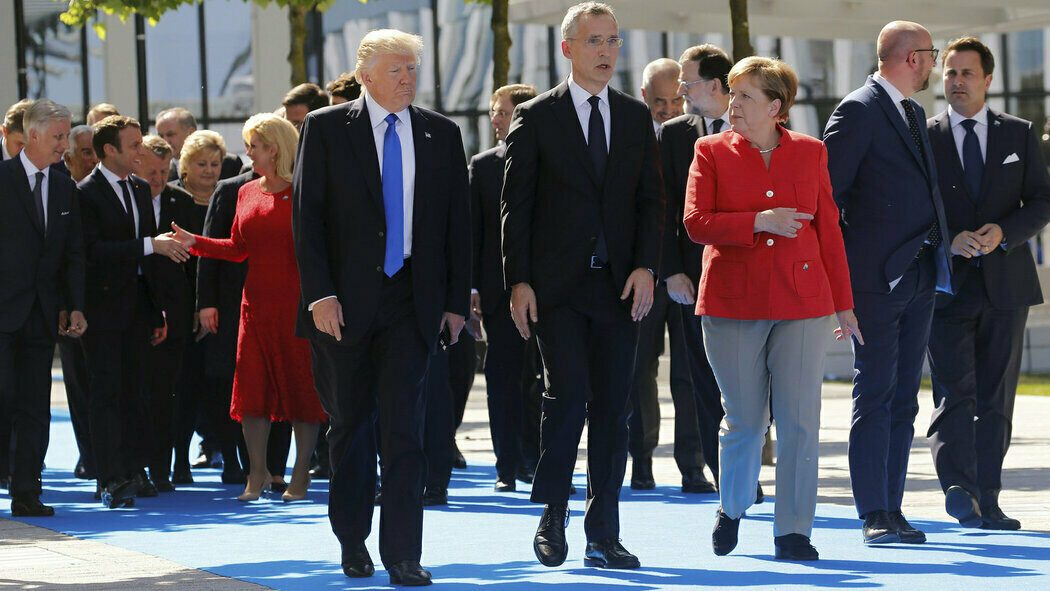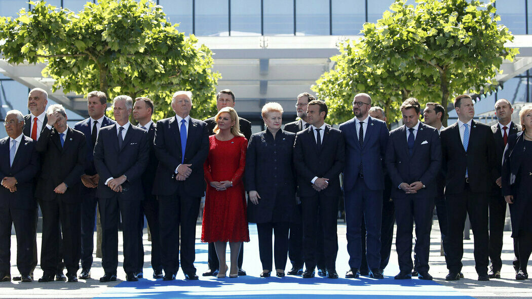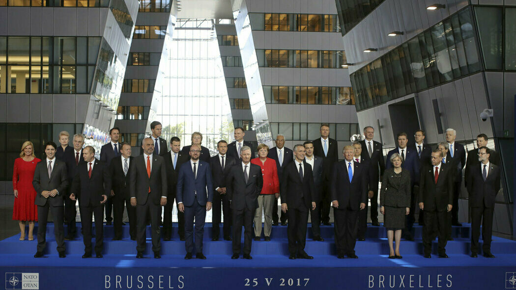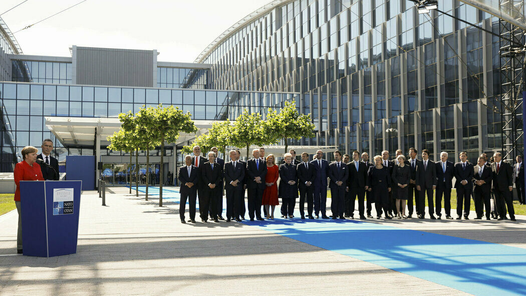 1/3 Pan prezident byl v Bruselu přivítán generálním tajemníkem NATO, zavítal na pořízení společné fotografie a na slavnostní ceremoniál.